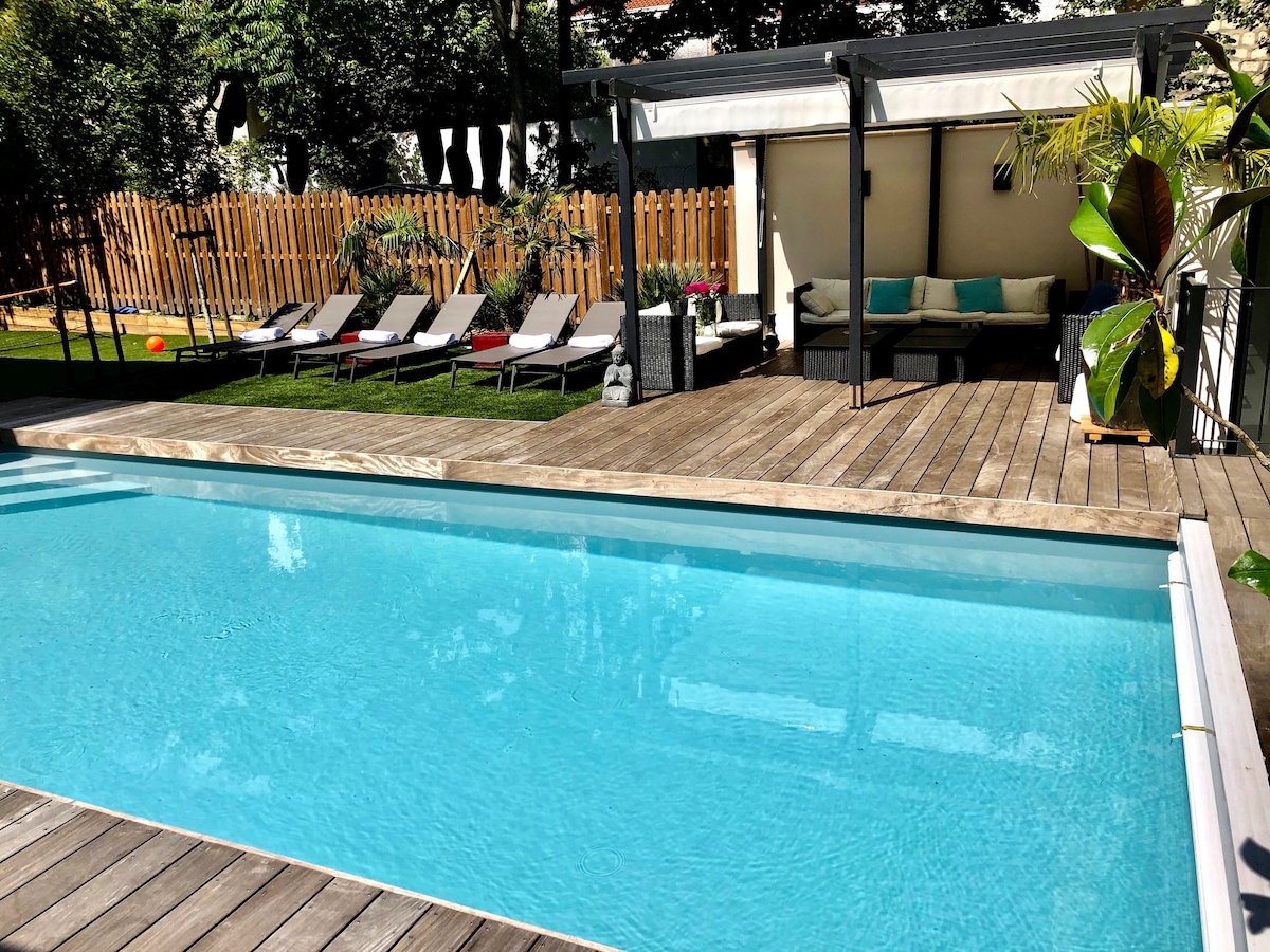 Temukan tempat liburan sempurna hanya 10 menit dari Paris, dekat dengan metro. Kepompong tanaman ini menjanjikan Anda relaksasi terbaik dengan spa pribadinya (termasuk jacuzzi 9 tempat duduk, sauna, dan hammam) dan ruang pemutaran pribadi dengan teknologi terbaru untuk pengalaman audiovisual yang luar biasa (termasuk layanan). Kamar tidur utama dan spa memiliki pemandangan taman yang menakjubkan, dengan kolam renang kecil yang disaring dan dipanaskan selama musim panas.