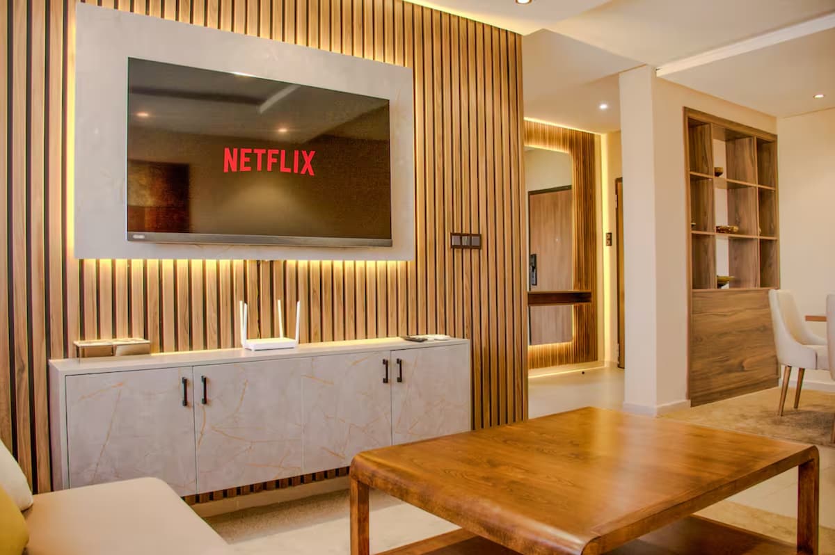 Selamat datang di kepompong Anda di Marrakesh Menginap di apartemen yang cerah dan bergaya yang terletak di hunian aman 24/7 dengan kolam renang. Dirancang sebagai tempat ketenangan sejati, rumah ini menggabungkan modernitas dengan pesona Maroko: dinding tadelakt berwarna beige, lantai marmer, perabotan kayu walnut, dan nuansa hijau zaitun menciptakan suasana yang menenangkan dan halus. Cocok untuk pasangan, keluarga, atau bekerja dari jarak jauh.