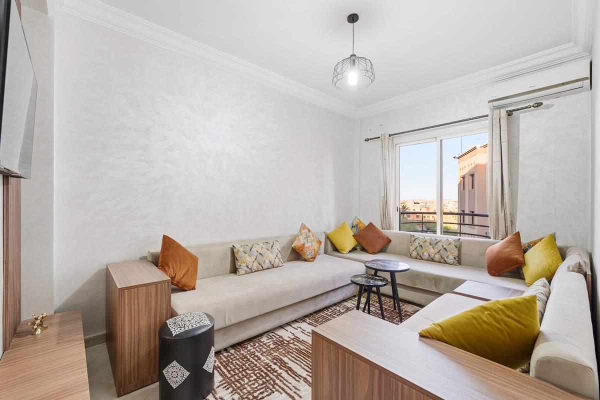 Selamat datang di apartemen menawan kami di jantung Vibrant Gueliz ✓ Terletak di pusat kota (5 menit berjalan kaki ke Carre Eden dan 20 menit ke Jamaa El Fna Place) ✓ Dekat dengan semua kebutuhan (restoran - toko...) ✓ Dilengkapi dengan semua utilitas penting untuk masa inap yang menyenangkan (Sepenuhnya dapur lengkap, Wi - Fi berkecepatan tinggi, perlengkapan tempat tidur berkualitas...) ✓ Sangat cocok untuk masa inap jangka pendek dan panjang, Anda akan menikmati kenyamanannya dan kenyamanan untuk mengunjungi kota Ochre di Marrakesh!