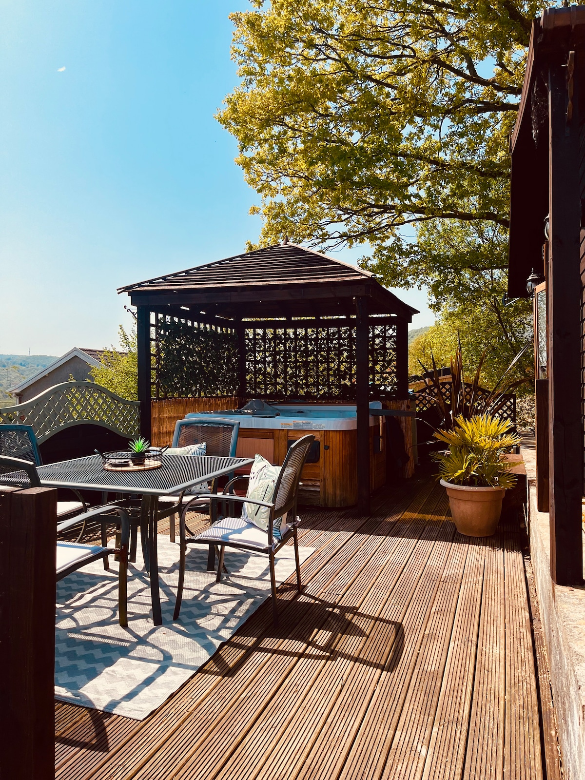 Berlibur ke Afan Forest Retreat di Lodge Modern dengan Fasilitas Mewah Terletak di desa Bryn, kota pegunungan yang menawan hanya dengan berkendara singkat dari Cardiff dan Swansea, penginapan bergaya dan modern kami adalah tempat liburan yang sempurna bagi para petualang dan pencari relaksasi. Mulailah masa inap Anda dengan meremajakan diri di sauna diikuti dengan bersantai di bak mandi air panas, menikmati pemandangan pegunungan yang menakjubkan.
