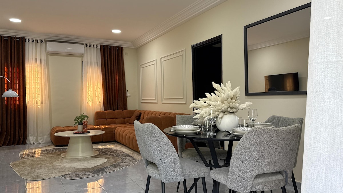 🏡✨ Welcome to La Parenthèse, an elegant new one-bedroom apartment of 55 sqm, cosy and bright, located in a quiet and secure residence just a 5-minute walk from Rue des Jardins, close to shops and restaurants. Enjoy a modern space with refined design, warm and relaxing, offering a fully equipped home and a cosy atmosphere for a peaceful and comfortable stay. ⭐ The ideal setting for a romantic getaway, a business trip, or an escape in the heart of Abidjan.
