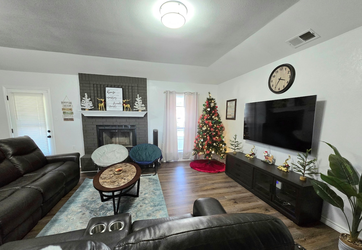 Datang dan nikmati rumah 1965 yang baru direnovasi dan berlokasi di lingkungan tinggal mapan yang berjarak 15 menit dari mana pun Anda ingin pergi di Abilene. Dengan ruang yang lebih dari cukup untuk pasangan, keluarga, pelawat bisnis, atau sekelompok teman, rumah ini menawarkan 4 kamar tidur yang indah termasuk suite utama pribadi dengan tempat tidur queen mewah. Kamar tidur lainnya termasuk tempat tidur queen tambahan, 1 tempat tidur double dan 2 tempat tidur twin. Nikmati dapur lengkap dengan semua perlengkapan dasar untuk membuat makanan Anda sendiri. Setiap tempat dilengkapi dengan perabot dan dekorasi yang penuh cita rasa dengan mengutamakan kenyamanan Anda. Internet nirkabel cepat, TV pintar, layanan streaming, dan sofa yang nyaman untuk Anda bersantai di akhir hari. Rasakan pengalaman ekstra yang memanjakan untuk meningkatkan masa inap Anda sesuai permintaan, termasuk layanan kebutuhan sehari - hari, paket romansa, pengiriman makanan yang dimasak di rumah, dan banyak lagi! Selama 5 generasi, keluarga House telah menyebut Abilene sebagai rumah, jadi kami dengan senang hati menyambut Anda di kampung halaman kami. Kami tidak sabar untuk menyediakan semua restoran lokal Abilene favorit kami, gerai kopi, atraksi populer, dan pengalaman menyenangkan untuk memastikan masa inap Anda di Abilene menyenangkan!