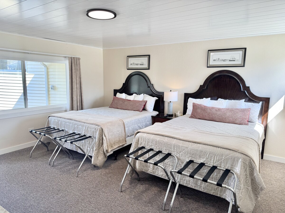 Terletak di lantai satu dan dua di gedung utama Inn. Dua Queen Deluxe Suite memiliki dua tempat tidur berukuran queen, kamar mandi pribadi, dan area duduk terpisah dengan sofa bed yang dapat ditarik. Setiap kamar memiliki pintu masuk interior dan pintu geser ke teras atau balkon. Semua kamar bebas asap rokok. Fasilitas: kulkas mini, microwave, hairdryer, setrika dan papan setrika, TV layar datar, Wi-Fi gratis, AC, penggunaan kolam renang dalam ruangan, bak mandi air panas dan ruang kebugaran, parkir gratis dan con yang diperluas.