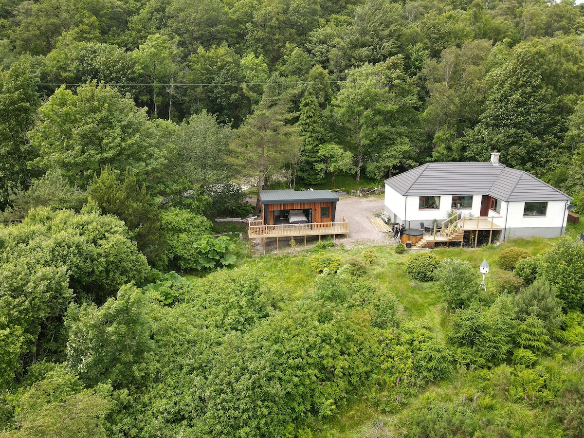 Damai dengan pemandangan Loch Eil dan Ben Nevis. Perhatikan rusa, berang-berang, tupai merah, elang, elang laut, bangau, dan spesies lainnya. Naik feri pejalan kaki (2 mil) atau berkendara mengelilingi Loch Eil (21 mil) untuk mengunjungi FORT WILLIAM atau hanya menjelajahi banyak jalan setapak lokal. Kunjungi Gelnfinnan hanya 20 menit berkendara dan saksikan Jacobite menyeberangi jembatan rel. Ada begitu banyak hal yang bisa dilakukan dan dilihat sehingga Anda harus kembali untuk melihat semuanya. (Buku Panduan) Tuan rumah: Richard (Inggris) & Aggie (Prancis)