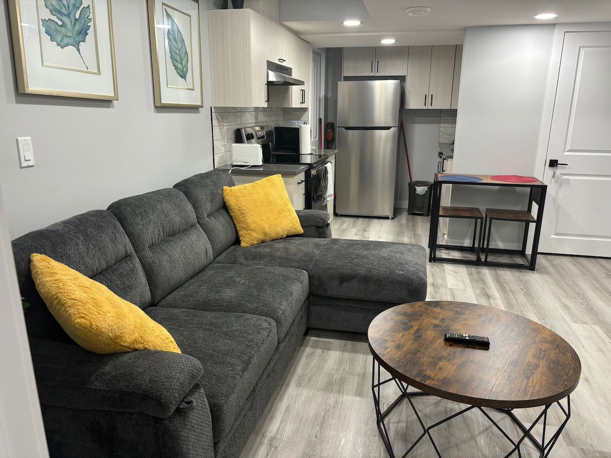 Suite basemen dengan pintu masuk terpisah di area yang tenang dan damai di West Edmonton menawarkan 1 kamar tidur dan 1 kamar mandi. Sangat terang dan baru dibangun. Parkir gratis di jalanan. Dekat dengan banyak layanan dan fasilitas * Properti yang dilarang merokok * Tidak diperbolehkan mengadakan pesta * Dilarang membawa hewan peliharaan Satu tempat tidur queen di kamar tidur. Satu sofa di ruang tamu yang juga bisa diubah menjadi tempat tidur. Suite ini bisa menampung maksimal 3 orang. *10 menit dari West Edmonton Mall. * 5 menit dari River Cree Casino. * Akses ke Anthony Henday