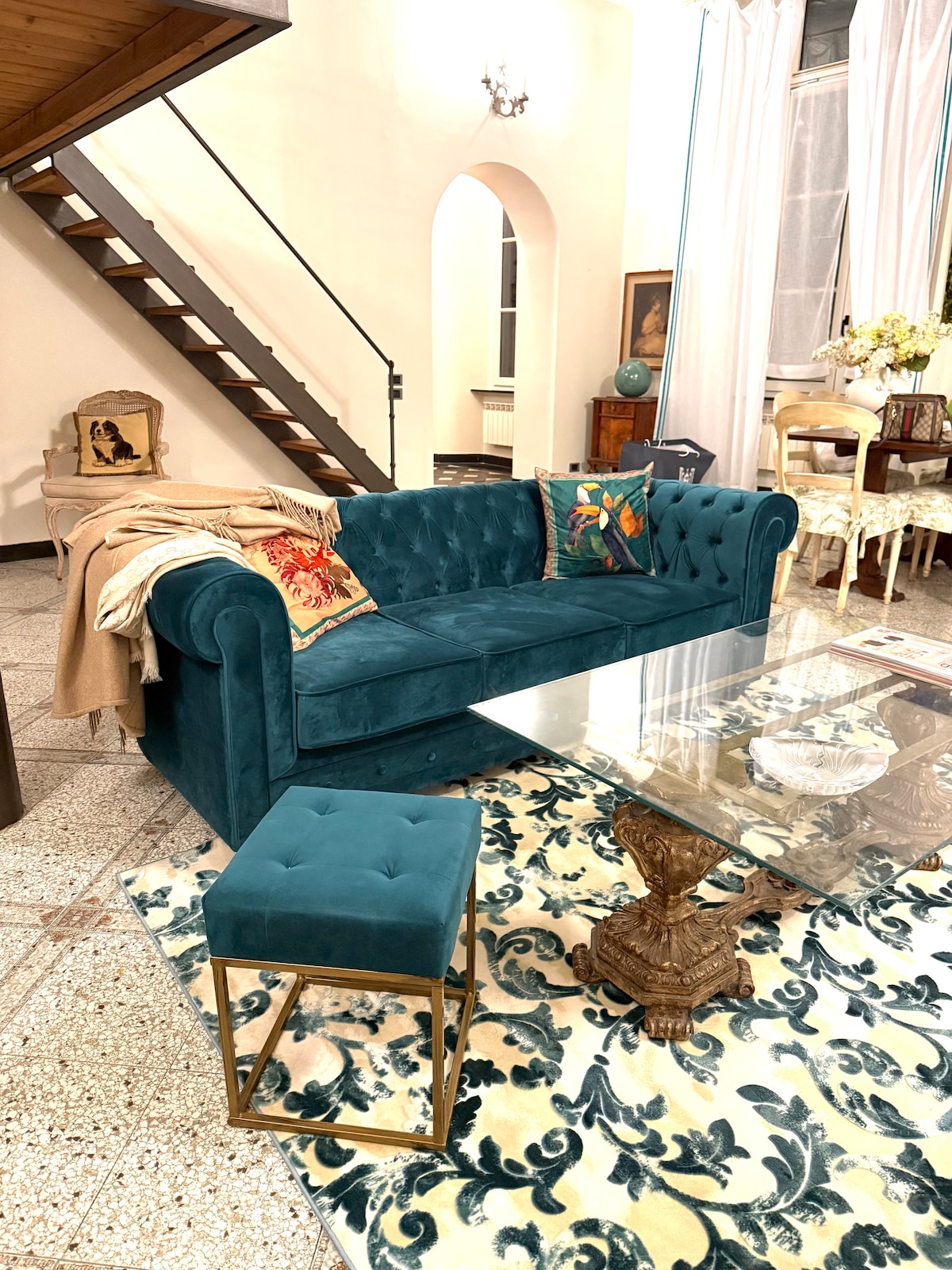 Penthouse mewah eksklusif yang terletak di lantai atas bangunan bersejarah, dengan pemandangan sejarah Genoa yang menakjubkan berkat balkon atapnya yang mempesona. Apartemen ini menawarkan: • dua kamar tidur double bergaya • ruang tamu ruang terbuka yang fantastis dan sangat terang dengan pemandangan monumen ikonik yang tak tertandingi • tempat tidur sofa yang nyaman di ruang tamu • dapur lengkap dengan semua peralatan terbaru • kamar mandi yang luas dengan kit sambutan.