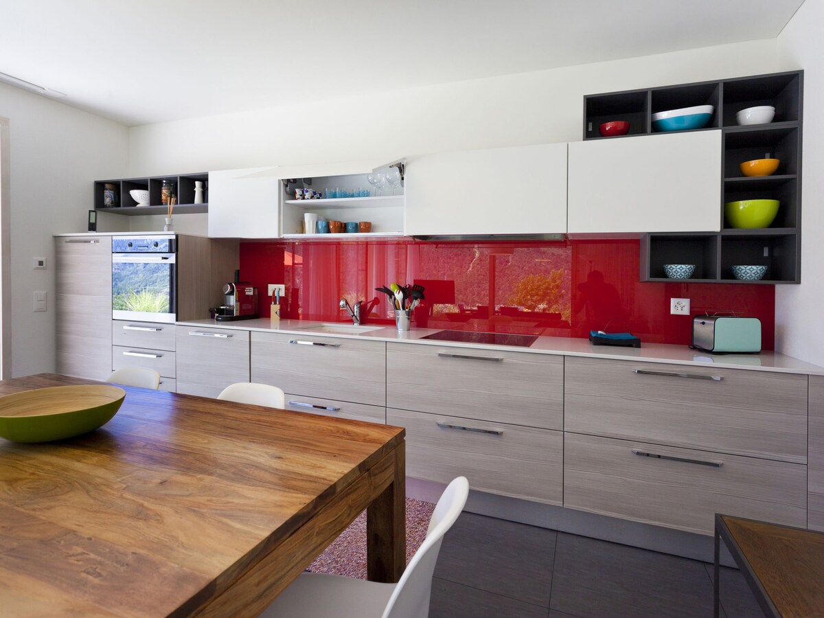 Rumah dua keluarga yang indah dan baru dibangun ini dengan pemandangan yang spektakuler dari Lago Maggiore, Ronco, Italia, Ascona dan Locarno akan membuat Anda terkesima. Apartemen yang luas (150 m2) memiliki jendela dari lantai hingga langit - langit di setiap ruangan, dapur yang dirancang khusus dengan open plan, teras besar yang menghadap danau dan dua ruang parkir. Tempat ini juga menawarkan lift dan kursi roda yang dapat diakses sepenuhnya. Ascona, akses danau dan fasilitas belanja hanya berjarak 10 menit berkendara.