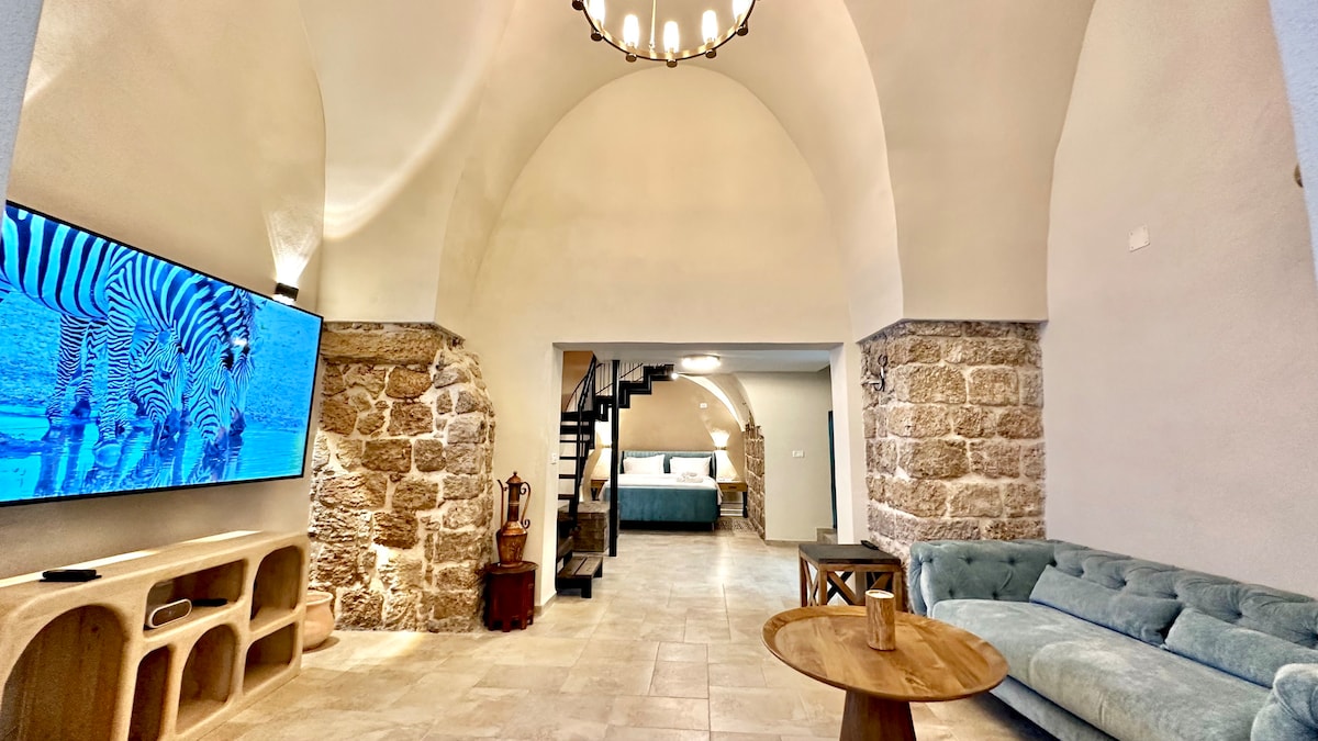 Sultana adalah apartemen studio dengan lengkungan Crusader dan Ottoman, langit-langit setinggi 12 kaki, dan pekerjaan batu bersejarah. Apartemen ini terletak di gedung abad ke-19 di pusat Kota Tua Acre, sebuah Kota Warisan Dunia, dan merupakan bagian dari kompleks Alma. Kompleks ini menawarkan tiga unit mewah dan patio yang akrab untuk bersosialisasi dan beristirahat. Kami berlokasi beberapa langkah dari pasar, pelabuhan, dan ajang kuliner yang berkembang. Kami sangat memperhatikan detail, dan kami senang menerima tamu! PPN 18% dapat berlaku!