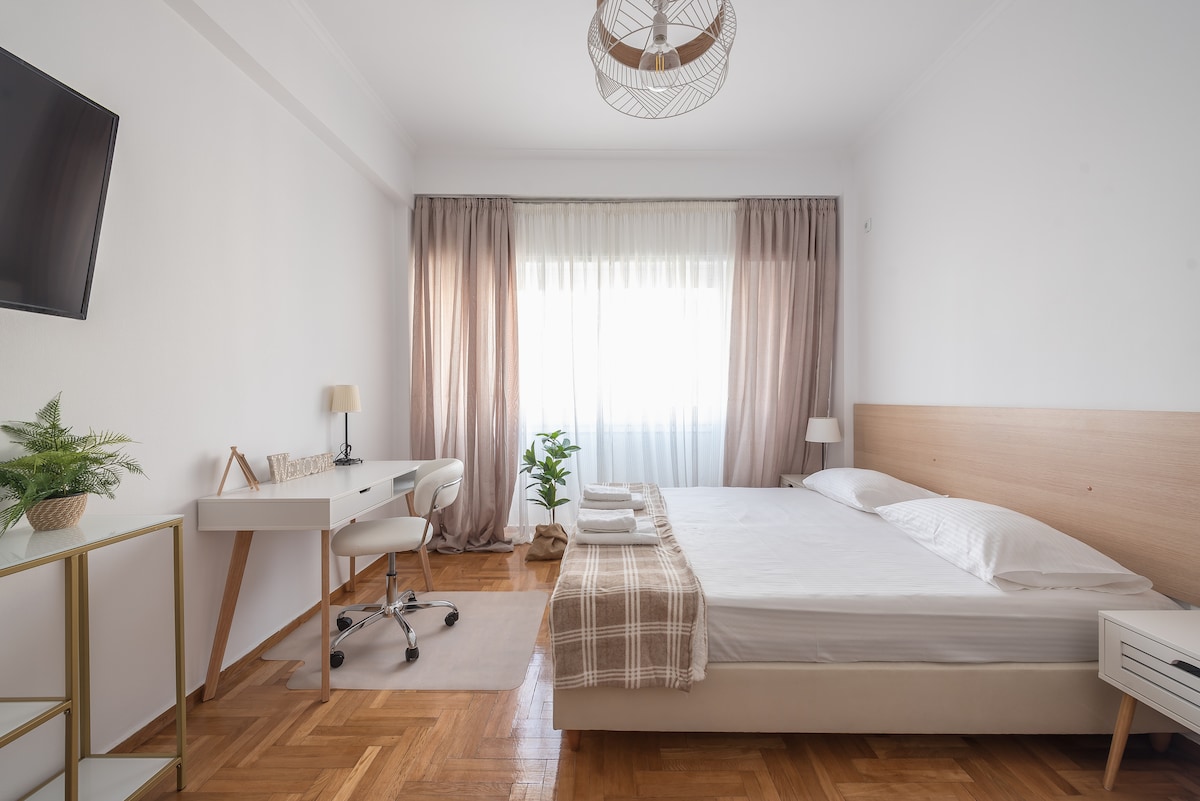 Rasakan perpaduan sempurna antara kenyamanan modern dan pesona bersejarah di Acropolis Horizon Suite kami. Apartemen 2 kamar tidur yang bergaya ini menawarkan pemandangan Acropolis yang menakjubkan dan hanya berjarak 2 menit berjalan kaki dari metro, menjadikannya basis ideal untuk menjelajahi Athena. Nikmati suasana yang luas dan kontemporer dengan semua fasilitas penting untuk masa inap yang menenangkan, baik berkunjung untuk bersantai atau bisnis. Penjemputan bandara atau pelabuhan bisa diatur sesuai permintaan.