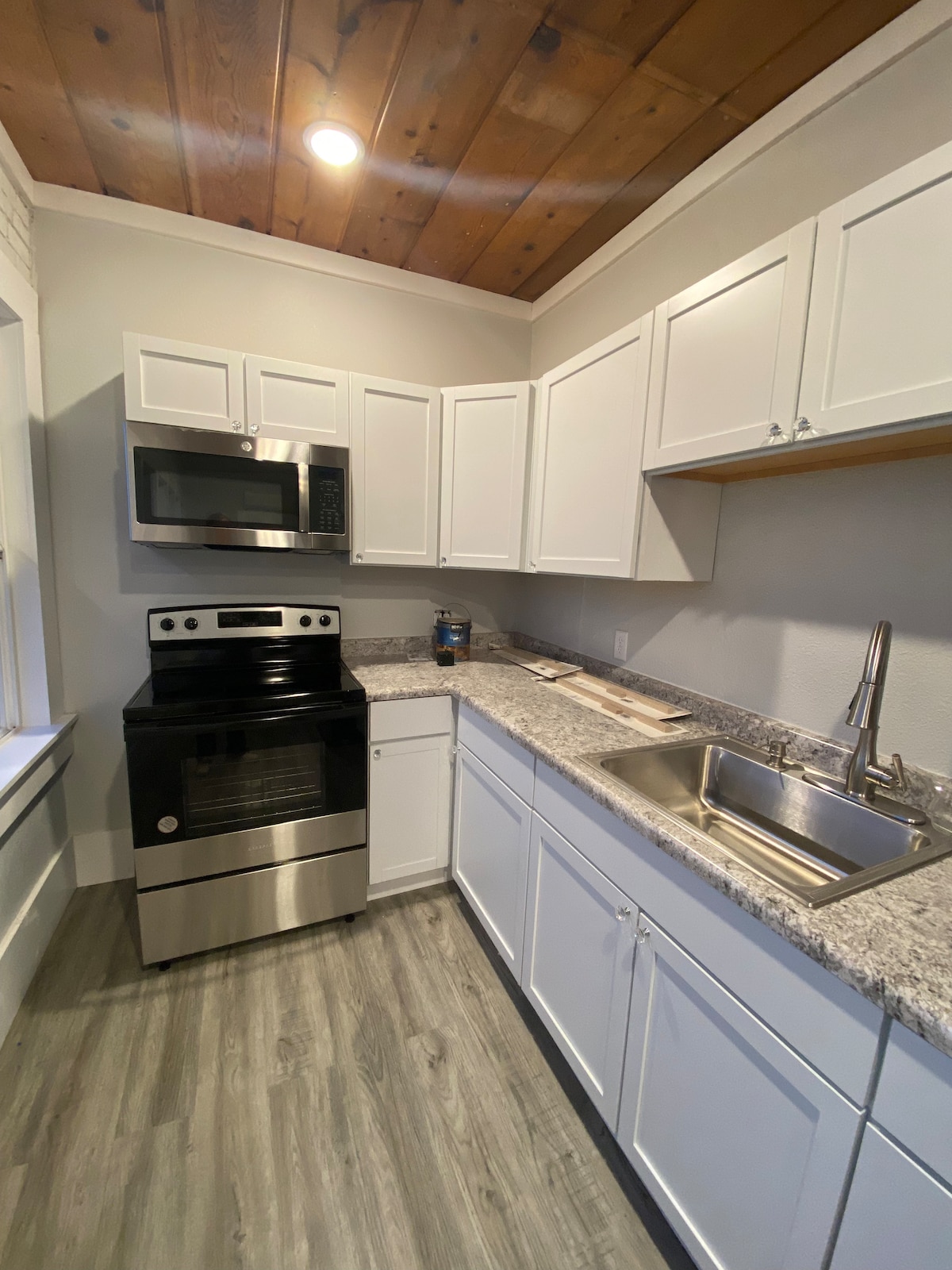 Apartemen satu kamar tidur yang menawan ini terletak di sebuah bangunan bersejarah yang dibangun pada sekitar tahun 1890, awalnya untuk digunakan sebagai tempat tinggal di atas pasar buah di dekat depot kereta api. Apartemen ini baru direnovasi dengan dapur lengkap yang menampilkan dinding jendela yang menghadap ke barat, ruang tamu yang nyaman, kamar tidur yang terang, bak mandi ubin, dan mesin cuci dan pengering berukuran penuh. Tempat ini nyaman sepanjang tahun dengan pemanas udara mini dan AC. Apartemen ini memiliki perabotan lengkap.