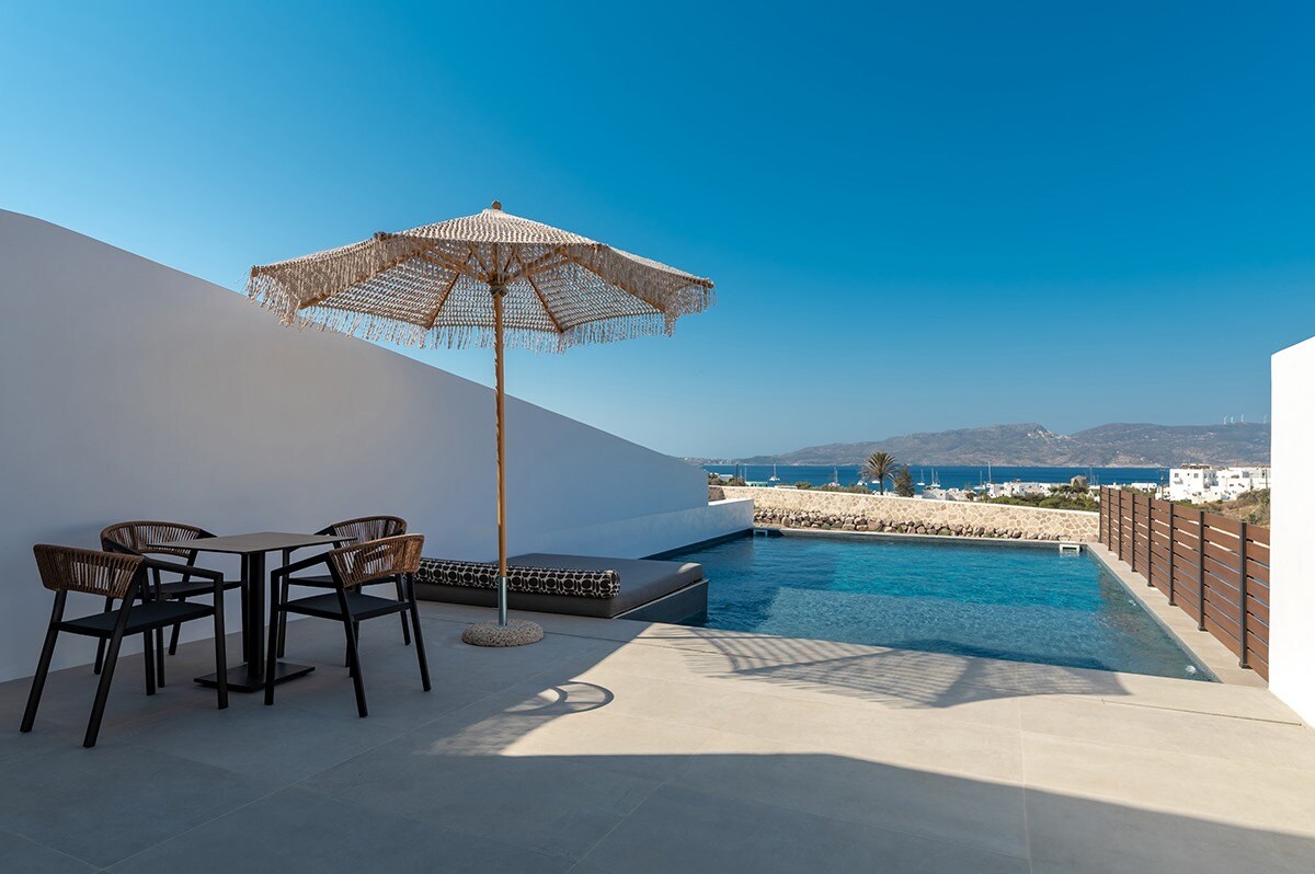 Pemandangan menakjubkan dari Villa Osmio! Terpencil namun hanya 3 menit dari Sarakiniko, tempat menginap mewah ini menawarkan privasi dan kenyamanan. Bersantai di kolam renang berpemanas 9 m yang menghadap Laut Aegea dan Pelabuhan Adamas, dan nikmati keranjang sambutan berisi camilan sarapan. Segera hadir musim panas ini: suite baru dengan kamar tidur ketiga, kamar mandi pribadi, dan area tamu yang nyaman, tersedia dengan biaya tambahan.