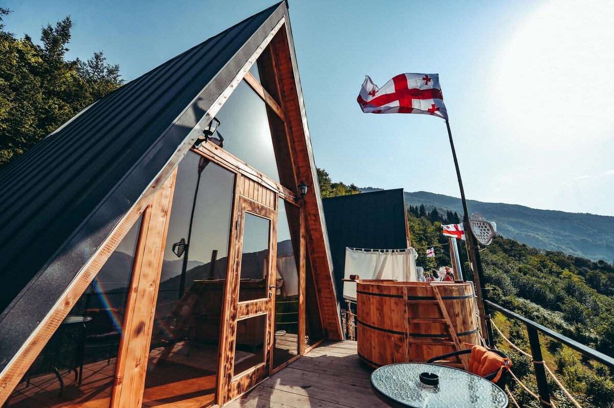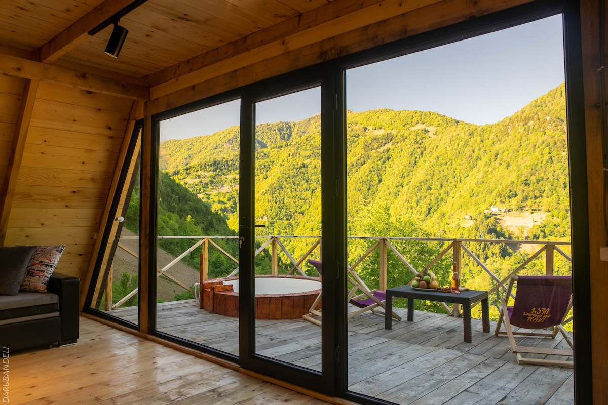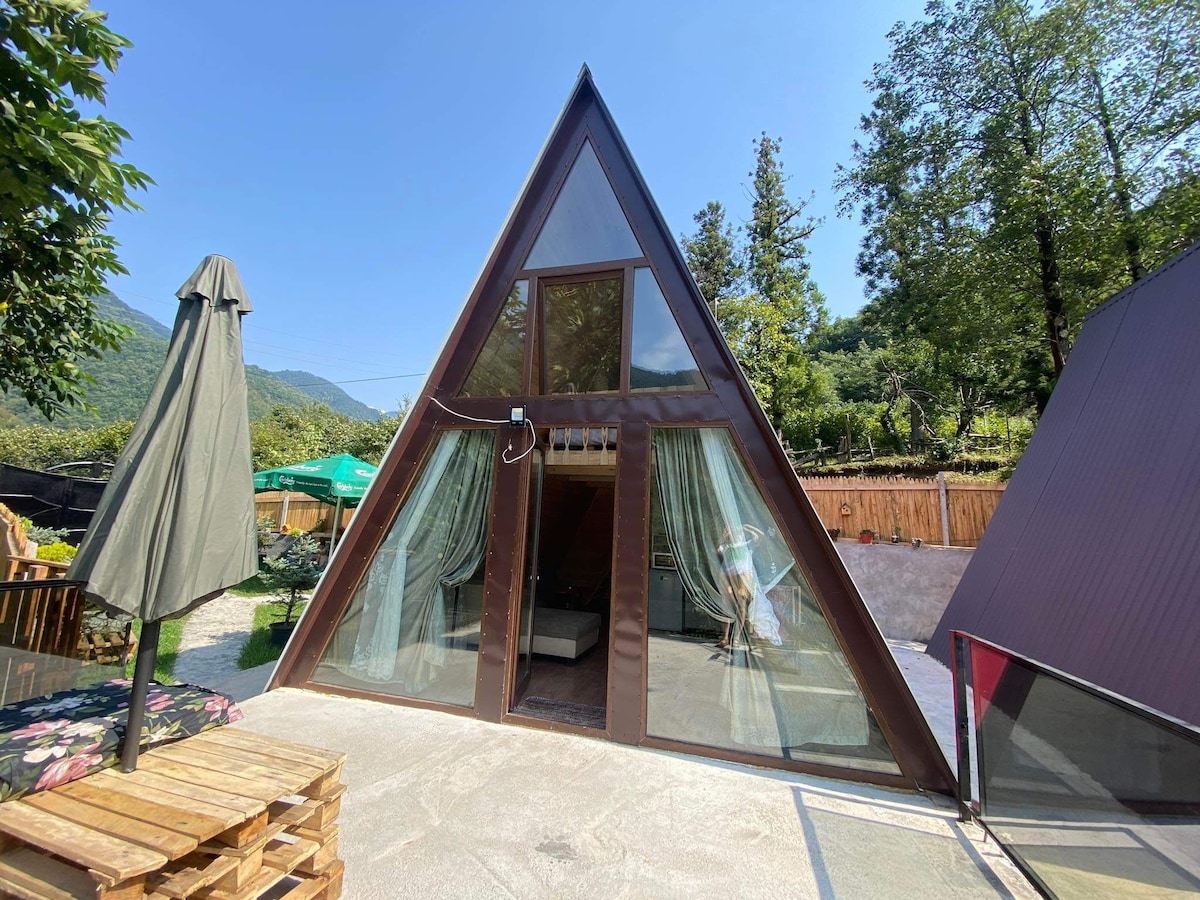 Kabin berbentuk huruf A yang menyatu dengan alam Guria, beberapa meter dari sungai dan dalam perjalanan ke gunung Gomi. Dapur luar ruangan, toilet kecil, dan pancuran bambu panas. Parkir gratis, Wi - Fi, aktivitas luar ruangan, dan ruang terbuka bersama.