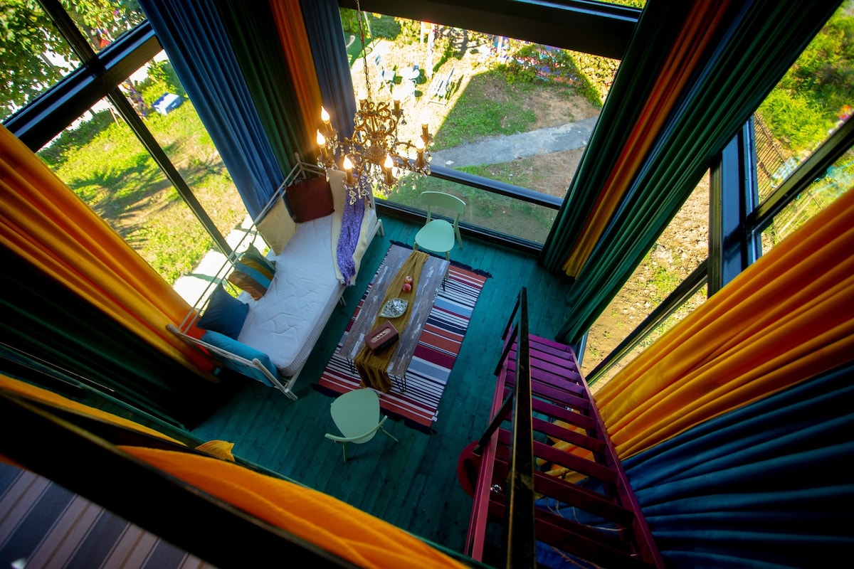 "A - Frame Rest - Art" menawarkan A Wood Cottage di puncak Kota Batumi, di mana Anda bisa melihat pemandangan panorama Kota, laut, dan pegunungan yang luar biasa. Pondok dengan halaman pribadi yang menciptakan lingkungan untuk bersantai yang ideal. Pondok itu sendiri dilengkapi dengan peralatan yang kreatif dan modern serta peralatan yang diperlukan. Pondok ini bisa menampung maksimal empat orang, dengan tempat tidur queen dan sofa.
