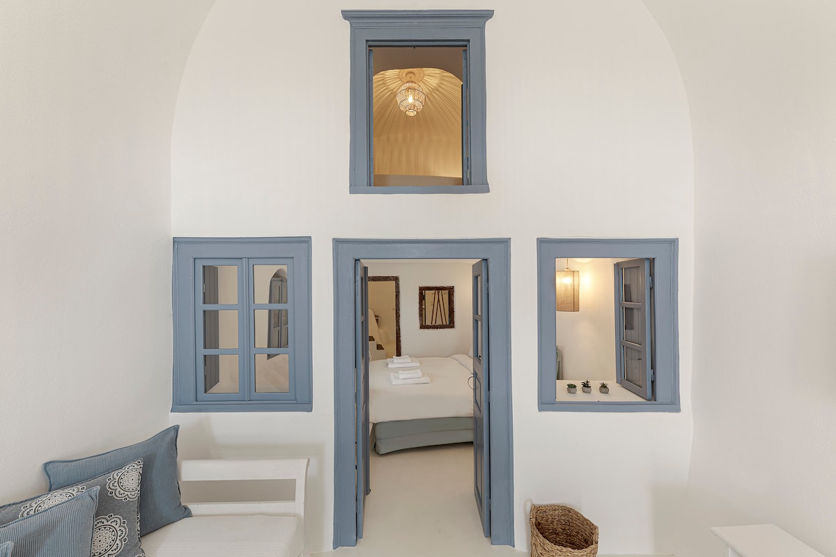 Suite elegan ini terletak di tebing kaldera di Oia. Tempat ini menggabungkan arsitektur Kyklades tradisional dengan gaya dekoratif minimalis, menjadikannya pilihan sempurna bagi mereka yang ingin bersantai. Suite ini berukuran sekitar 37 m2, dilengkapi bak mandi air panas gua luar ruangan pribadi, menawarkan privasi serta pemandangan kaldera dan gunung berapi yang menakjubkan. Sarapan sudah termasuk dalam harga. Kamar dilengkapi dengan AC, Wi - Fi gratis, fasilitas pembuatan kopi dan teh, fasilitas mandi, dan smart TV.