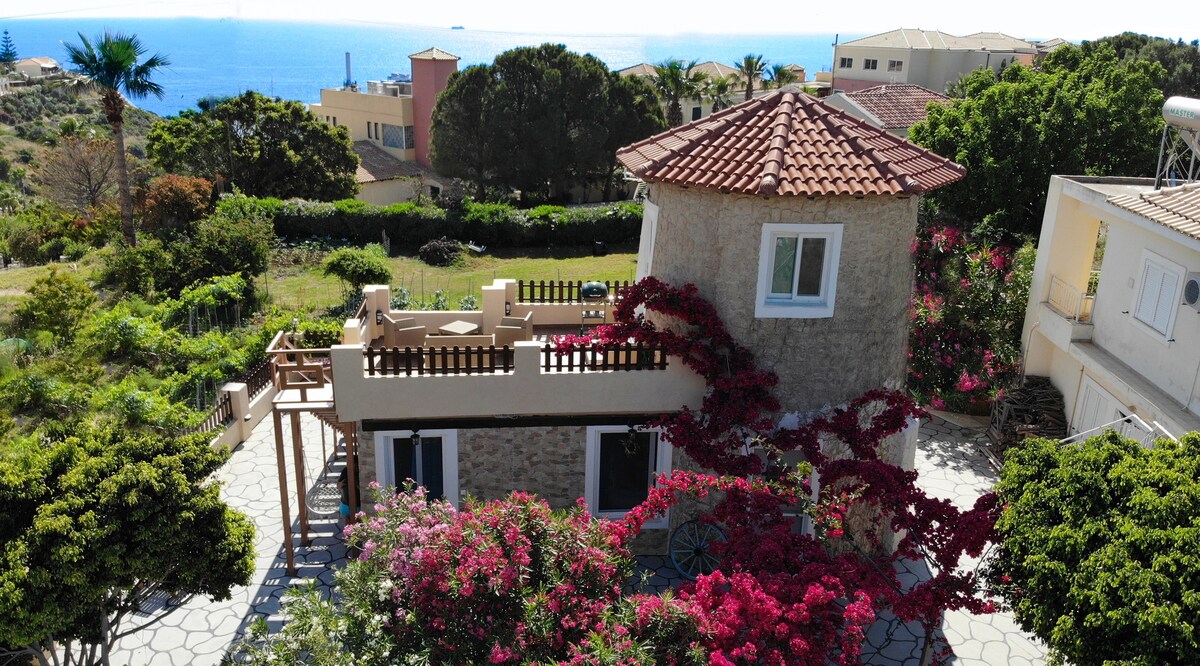 Terletak di pelukan tenggara Kefalonia, di mana Laut Ionia membentangkan permadani warna biru kehijauan dan safir yang berkilauan, terletak Skali Retreat. Terletak di perumahan pribadi seluas satu hektar, suaka ini menghadap panorama menakjubkan yang bergeser dan berkilauan di bawah matahari Yunani. Perkebunan ini, Eden yang hijau, dipenuhi pohon buah - buahan - aprikot, pir, delima, buah ara, almond, pistachio, dan banyak lagi, menawarkan hidangan harum untuk indera.