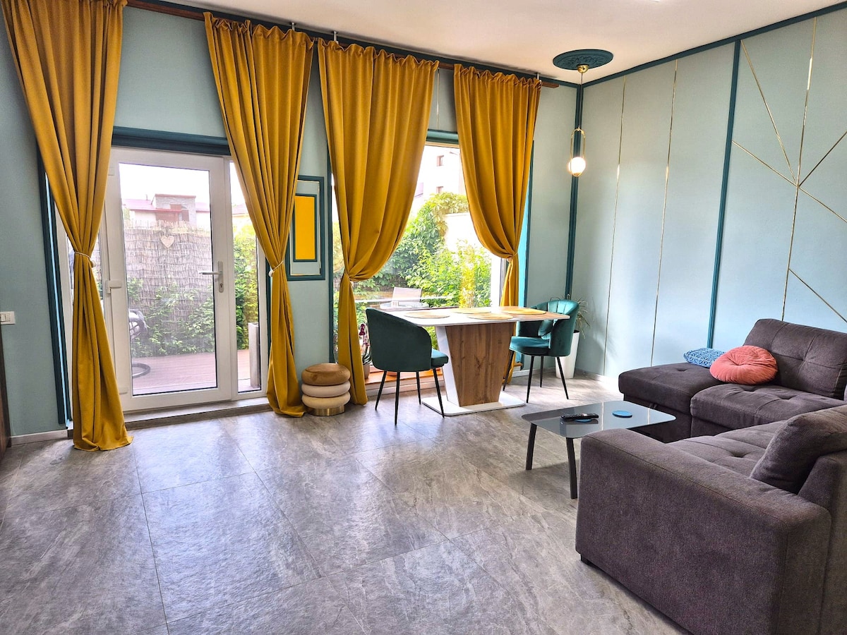 Benamkan diri Anda dalam keanggunan artistik dan kenyamanan yang mudah di tempat peristirahatan satu kamar tidur yang bergaya ini. Sangat cocok untuk bisnis atau liburan, tempat ini mengundang Anda untuk bersantai dengan film, menikmati espresso segar, atau tetap produktif dalam suasana yang tenang. Dirancang dengan apik untuk relaksasi dan kenyamanan, nikmati check - in mandiri yang mulus, WiFi berkecepatan tinggi, dan parkir di dekatnya. Rasakan pengalaman bergaya Bucharest - pesan sekarang untuk masa inap yang tak terlupakan!