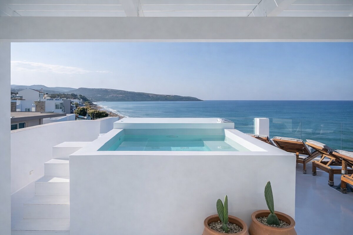 Blue Bay Suite, bagian dari komplek Mediterranean Blue Suites & Villa, terletak hanya 3-4 menit berjalan kaki dari pantai Afrathias yang tenang di selatan Kreta. Ideal untuk pasangan, keluarga, atau wisatawan solo, suite bergaya ini menawarkan 1 kamar tidur, dapur lengkap, kamar mandi, ruang tamu yang nyaman dengan tempat tidur sofa, dan beranda yang luas dengan pemandangan terbuka. Terletak di lokasi yang tenang di dekat Kokkinos Pirgos, Matala, dan Kalamaki, dengan akses mudah ke situs arkeologi penting.