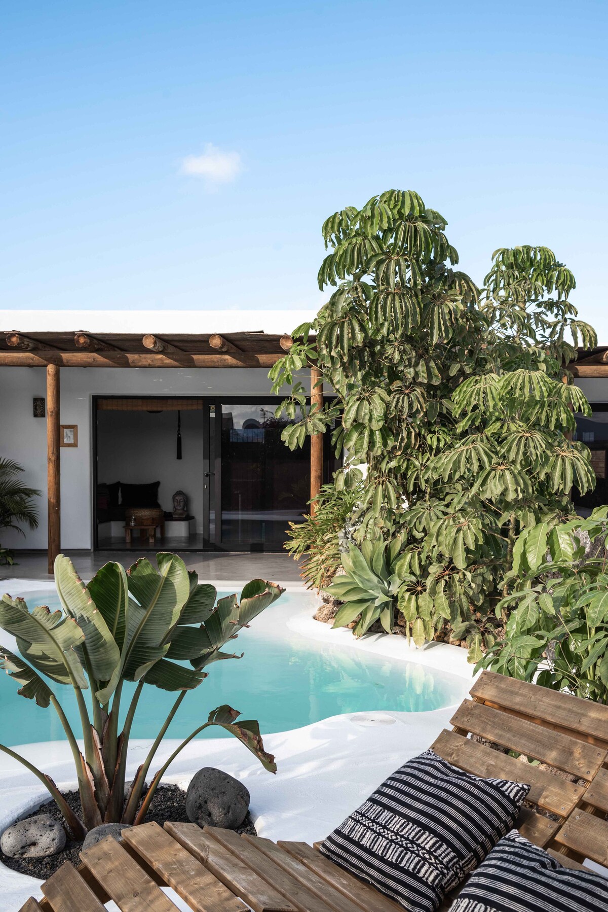Sayap tamu yang elegan dengan taman & kolam renang pribadi.