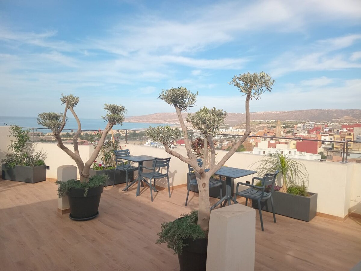 Nestled in vibrant Colorful Aghroud village, Rosyplage is a beachfront gem offering stunning ocean views from every room. Ground :fully-equipped studio 1st floor feels like being on a boat with a Moroccan lounge & 75-inch Netflix-ready TV.Two sea-facing bedrooms await upstairs.Top-level: kitchen leading to a terrace, followed by a sun-soaked solarium ideal for yoga & sunsets.Note: The accommodation is equipped with a surveillance camera at the entrance.the house has 4 levels stairs not suitable