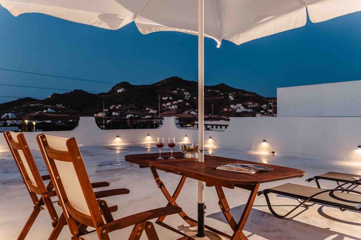 Selamat datang di Under the Stars Suite kami yang indah, tempat peristirahatan Airbnb berdesain minimalis di pulau Naxos yang indah. Sangat cocok untuk pasangan, suite bergaya ini menawarkan perpaduan sempurna antara kenyamanan dan ketenangan, dengan pemandangan laut yang berkilauan dan desa - desa Naxos yang menawan. Masuklah ke ruang tamu yang cerah dan lapang, dihiasi dengan dekorasi minimalis dan perabotan yang dipilih dengan cermat.