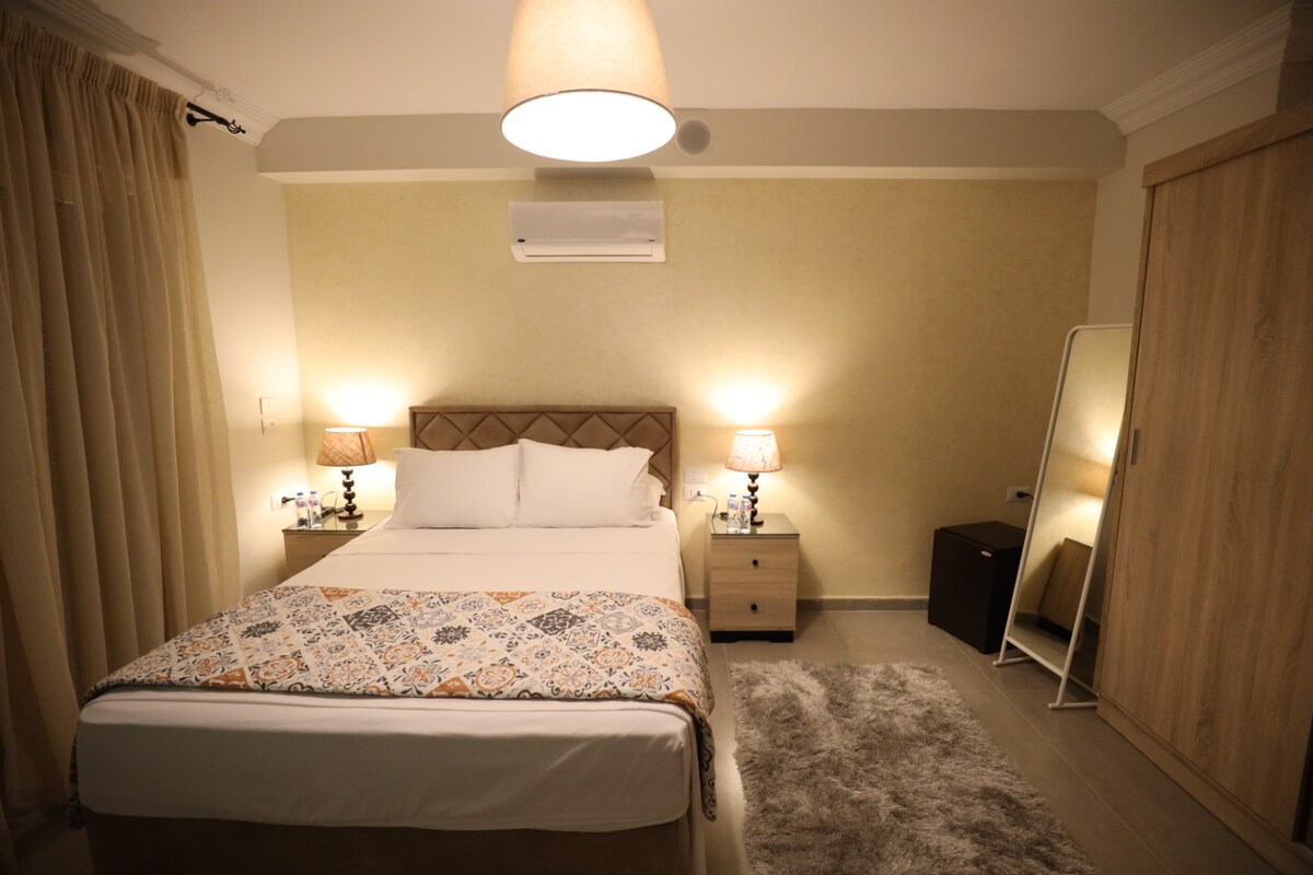 Apartemen lantai besar (2 kamar tidur + ruang tamu + kamar mandi + dapur). Di dalam area lokal "Ard Ellewa" (10 menit berjalan kaki ke alun-alun Lebanon/15 menit berkendara ke Pusat kota Kairo) dan dekat dengan stasiun metro Sudan dan stasiun metro Wadi El-Nile