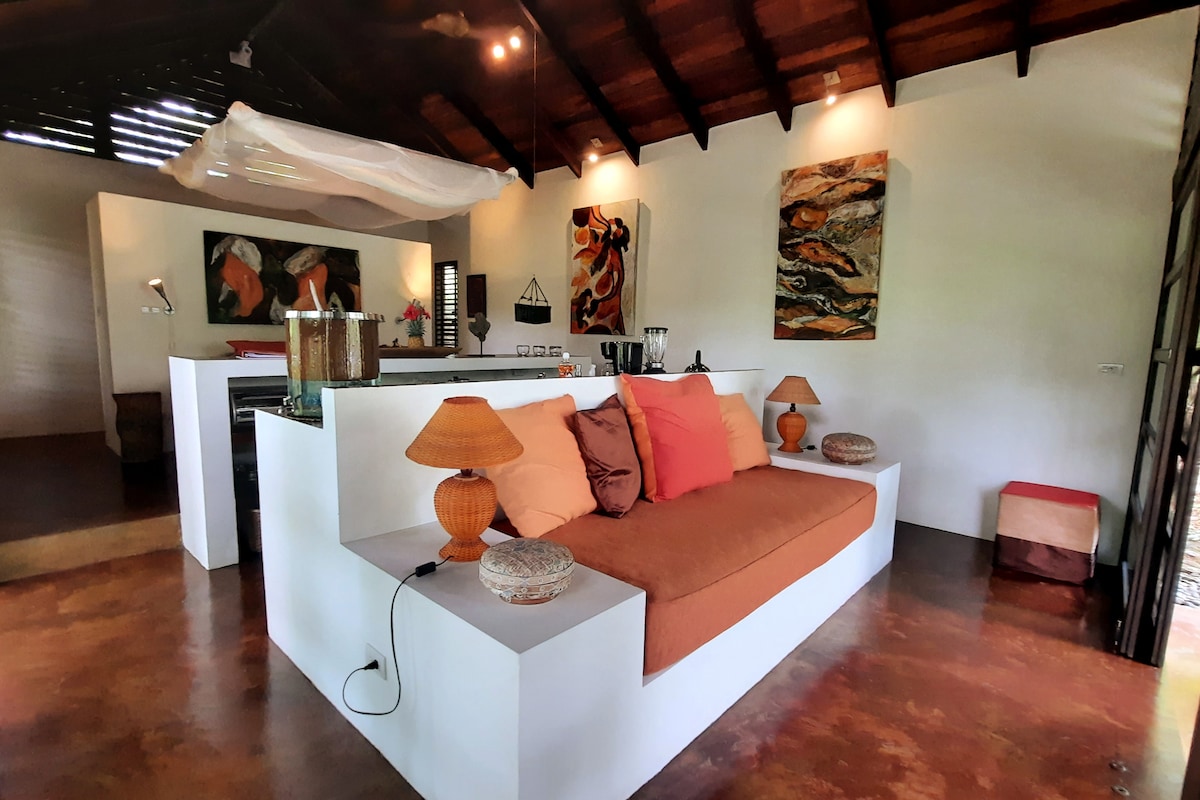Terletak tinggi di pepohonan, rumah bergaya Bali dua lantai yang romantis ini menawarkan pemandangan Isla Ballena, Pulau Caño, dan Semenanjung Osa yang menakjubkan. Bersantai di kamar mandi luar ruangan dengan berendam hangat di bawah bintang-bintang atau berendam dingin yang menyegarkan dikelilingi oleh suara hutan. Privat namun dekat dengan kota, tempat ini adalah tempat peristirahatan yang sempurna untuk pasangan yang mencari koneksi, alam, dan sentuhan ajaib. Dirancang untuk pasangan yang mencari sesuatu yang benar-benar istimewa, rumah ini mengundang Anda untuk bersantai dan terhubung dengan alam—dan satu sama lain