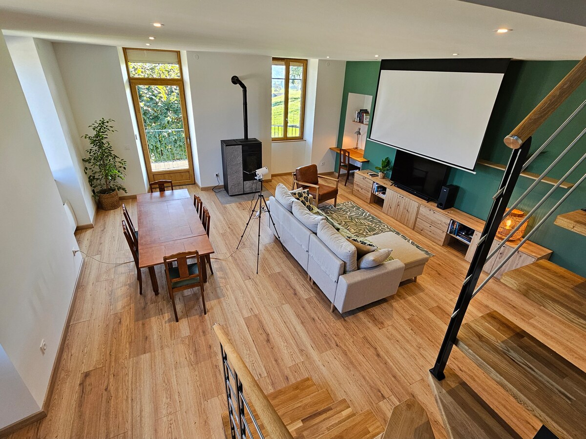 Kepompong hangat di lumbung des Bauges yang direnovasi oleh kami pada tahun 2020. Udara yang tenang dan bersih, Anda berjarak 7 menit dari resor ski Féclaz, 20 menit dari Chambéry dan Hautes Bauges, 40 menit dari resor Margériaz Di lokasi, Camille mempraktikkan pijat kesehatan, mengajarkan pelajaran yoga. Florent, pemandu gunung, menawarkan pendakian dari semua tingkatan, disertai dengan Heidi dan Doudou keledai kami.