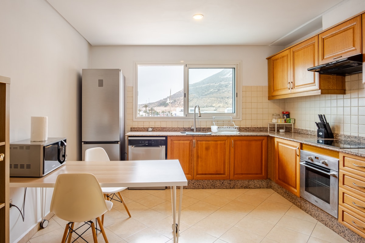 ✨ 3BR/2BA yang baru direnovasi di Kompleks Marina eksklusif Agadir yang berpagar. Sangat cocok untuk keluarga atau teman yang mencari penginapan yang damai dan bergaya. Luas, sentral, dan dapat dijangkau dengan berjalan kaki — dengan dapur lengkap, AC di setiap kamar, Smart TV, dan pancuran hujan. 🚫 Tidak cocok untuk rombongan pria lajang yang ingin berpesta 📄 Pasangan Maroko harus memberikan surat nikah yang masih berlaku.