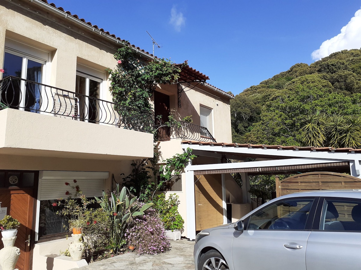 INDEPENDENT apartment on the ground floor of villa placed alone on a plot of 4000m² above the departmental on the mountain side facing the sea Dilengkapi dengan baik di area dapur electromenager ruang tamu ruang makan terbuka ramah dan 1 canape click clac 2 Kamar tidur dengan 1 tempat tidur besar untuk 2 orang 140/190 dan 3 x 1 x 90/90 Di taman semua kenyamanan untuk bersantai makan bersama keluarga yang terlindung di bawah teras dan memasak di barbekyu...