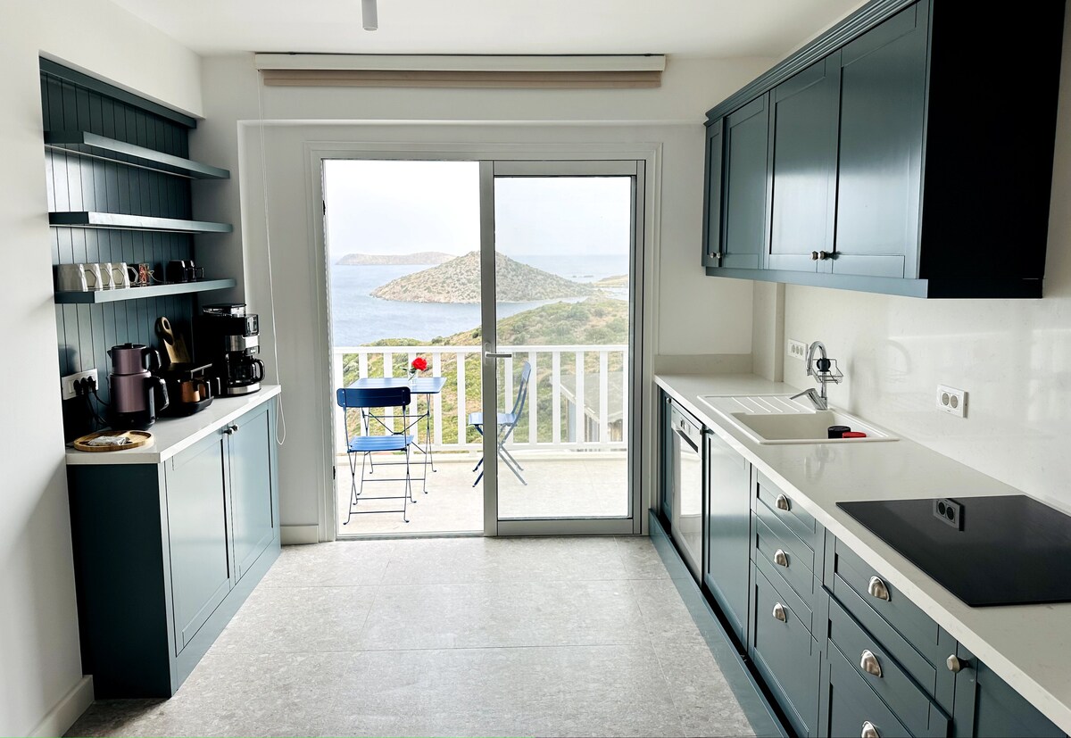 Vila mewah unik ini memiliki 3 kamar dan ruang tamu yang luas. Dapur bergaya Amerika lengkap. Seluruh vila menghadap ke laut. Kolam renangnya terpisah dan memiliki garasi pribadi. Lokasinya berada di titik paling dominan di Bodrum. 6 orang dapat menginap dengan nyaman.