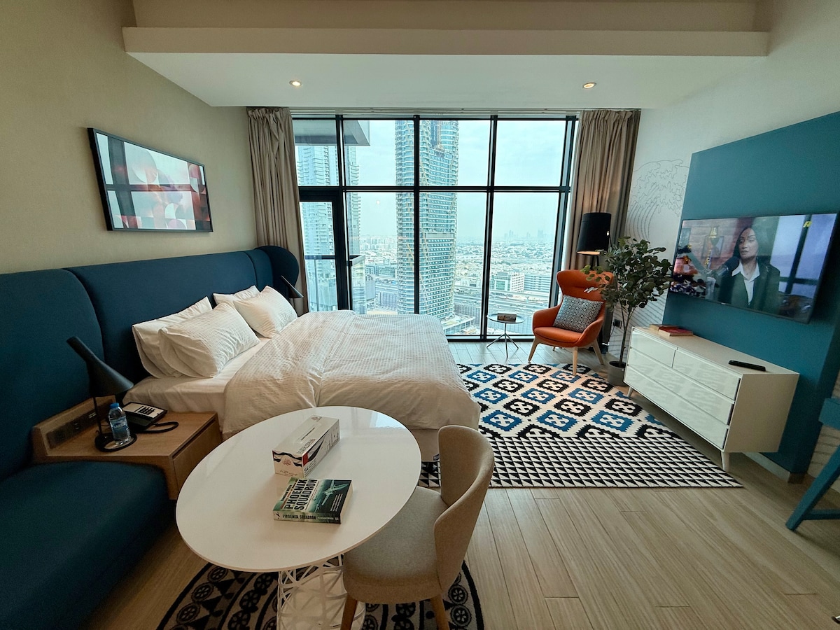 Experience luxury in our newly refurbished studio at JW Marriott Residences, Dubai Marina. Enjoy full Marina views, direct access to Dubai Marina Mall, and a sleek, modern design with premium finishes. Relax at the outdoor infinity pool overlooking the Marina, or stay active in the full gym. The space includes a plush king size bed, fast Wi-Fi, 65" smart TV, kitchen facilities, and luxury bathroom - perfect for both business and leisure stays in the heart of Dubai Marina.