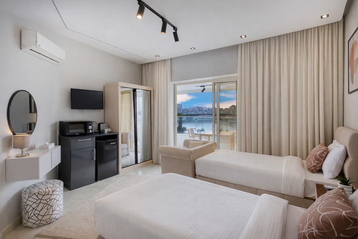 Studio Kembar Nyaman dengan Pemandangan Balkon Nil