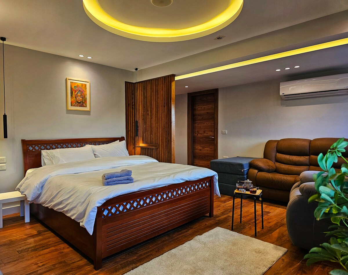 Apartemen studio yang luas dan ditata dengan baik yang berada di pusat kota Kairo. Apartemen ini dilengkapi dengan semua fasilitas yang diperlukan untuk memastikan masa inap yang nyaman dan menyenangkan, termasuk dapur berperabot lengkap, perlengkapan tempat tidur yang nyaman, dan fasilitas kamar mandi modern. Tamu akan memiliki akses ke area atap gedung, yang mencakup bar kopi, area merokok, dan ruang bersama lainnya. Lokasi utama apartemen ini mudah dijangkau dari tempat wisata utama, pilihan bersantap, dan distrik perbelanjaan.
