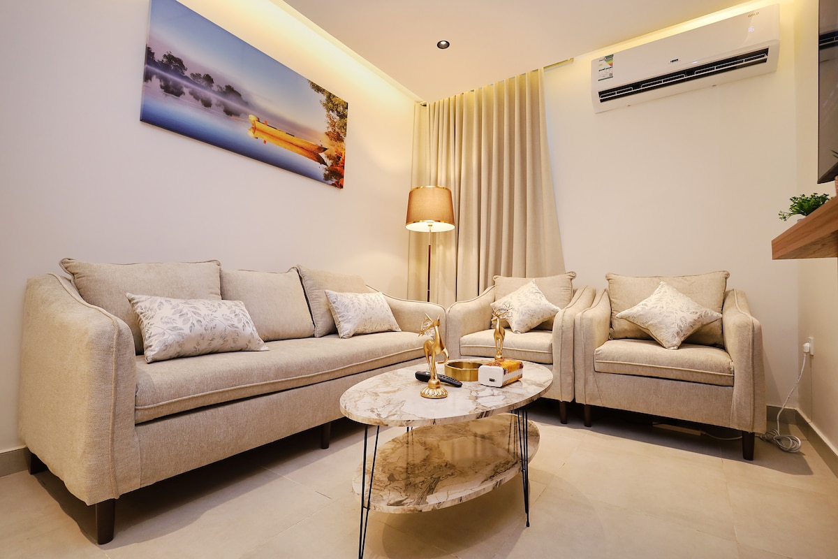 Studio yang elegan dan tenang terletak di lantai dasar dengan akses pintar untuk kenyamanan dan keselamatan yang lebih baik. Tempat ini memiliki tempat tidur utama yang nyaman dan sofa yang sangat cocok untuk bersantai. Dilengkapi dengan layar pintar 60 inci dengan langganan Netflix, Watch, dan YouTube Premium untuk pengalaman hiburan lengkap. Wi-Fi cepat tersedia, dengan perhatian yang sangat tinggi terhadap kebersihan untuk memastikan masa inap yang nyaman dan sempurna.