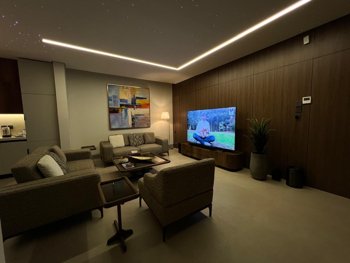 Studio yang elegan dan tenang terletak di lantai dasar dengan akses pintar untuk kenyamanan dan keselamatan yang lebih baik. Tempat ini memiliki tempat tidur utama yang nyaman dan sofa yang sangat cocok untuk bersantai. Dilengkapi dengan layar pintar 60 inci dengan langganan Netflix, Watch, dan YouTube Premium untuk pengalaman hiburan lengkap. Wi-Fi cepat tersedia, dengan perhatian yang sangat tinggi terhadap kebersihan untuk memastikan masa inap yang nyaman dan sempurna.