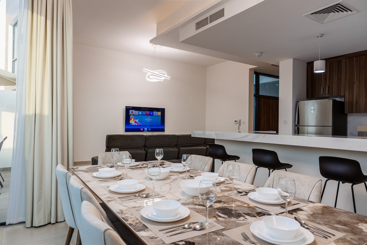 Buat kenangan di tempat unik dan ramah keluarga ini. Lokasinya berada di Marbella, pulau Hayat, Ras al Khaimah, di antara 2 hotel mewah. Tempat ini memiliki akses ke pantai, kolam renang, dan gym (hanya untuk komunitas Marbella). Anda bisa menikmati terumbu karang dan laut terbuka. 5 menit ke supermarket, restoran dengan berjalan kaki. Taman bermain anak - anak besar di dekat vila, lapangan basket, parkir untuk beberapa mobil. Tempat menakjubkan untuk menginap bersama keluarga dengan tampilan segar bergaya dengan semua fasilitas.
