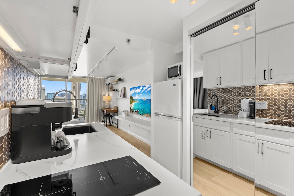 Pemandangan Skyline | Studio Modern di dekat Pantai Waikiki