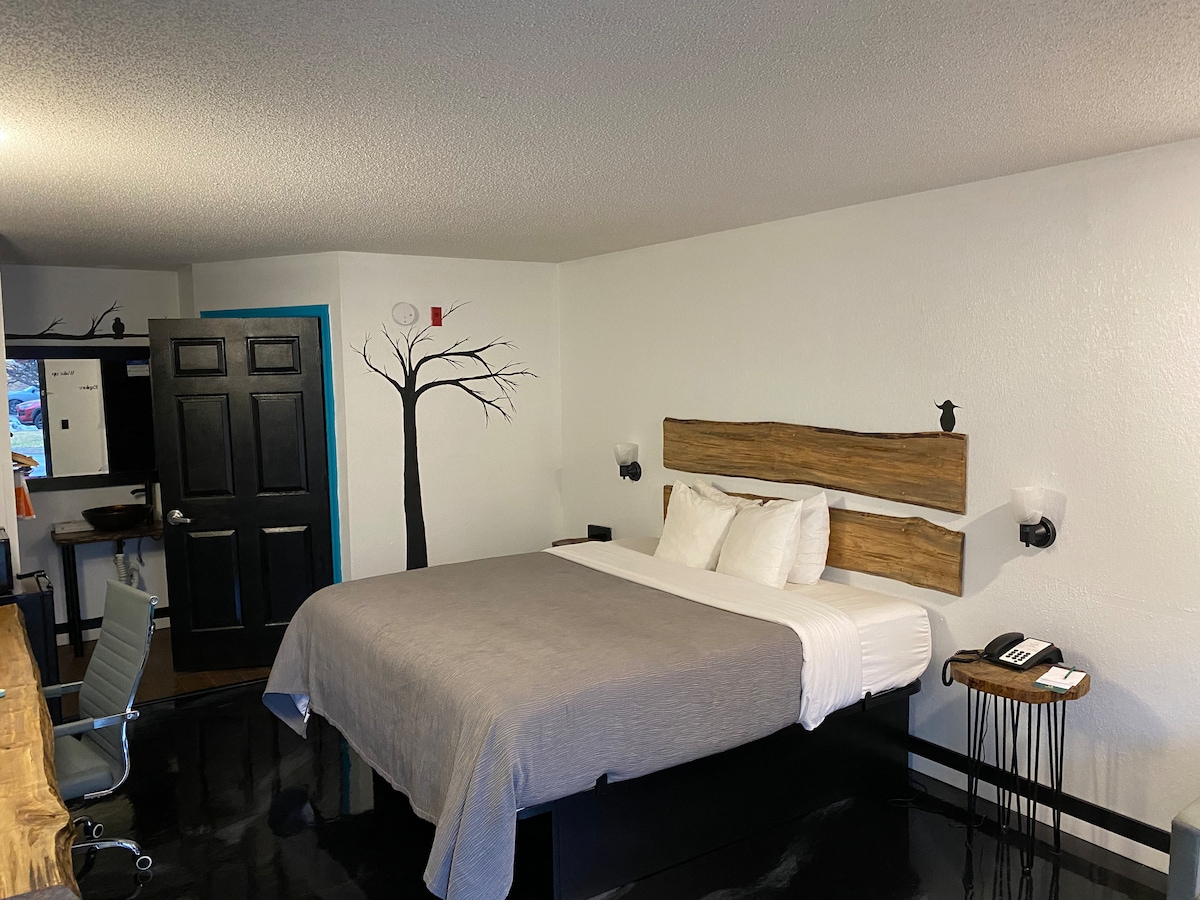 Single Queen Bed loacted di hotel 10 kamar menawan yang telah direnovasi sepenuhnya di Clay County yang terletak beberapa menit dari Lake Wedowee dan Cheaha State Park. 5 kamar queen dan 4 kamar double. Setiap kamar memiliki TV 40", Wi - Fi, Roku, kulkas, pembuat kopi, dan kopi gratis.