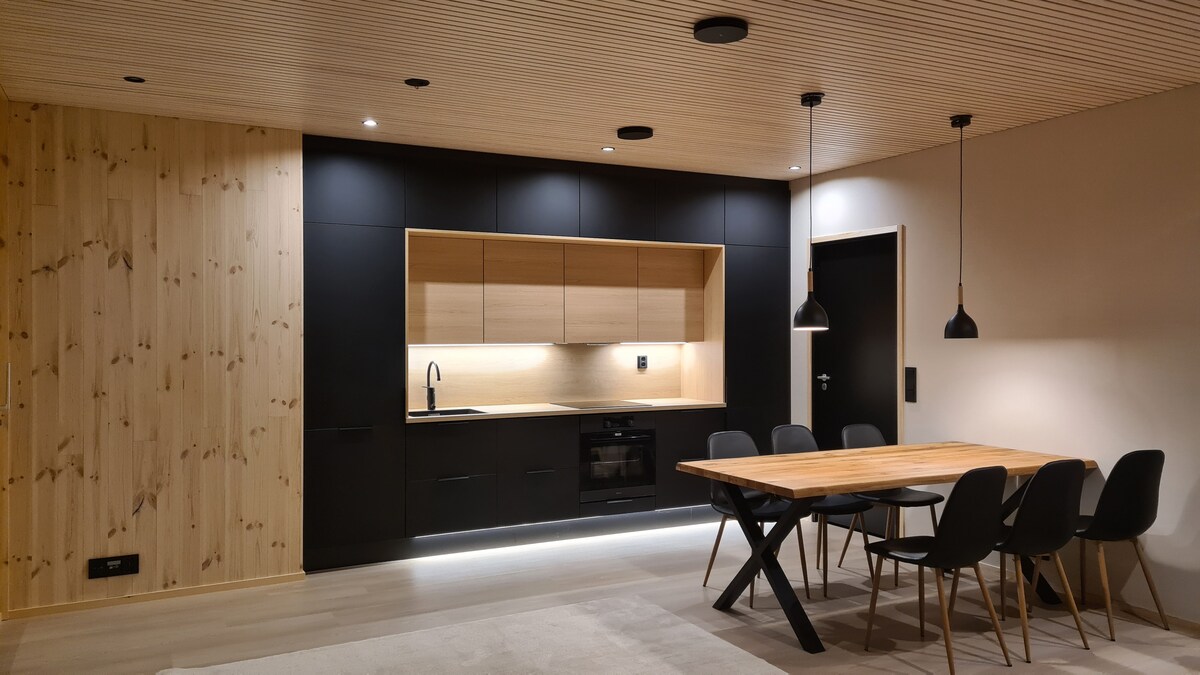 Sun Villas A23 adalah rumah yang nyaman dan modern di tengah - tengah layanan Kalajoki Sandbanks. Apartemen loteng dua lantai ini berada di pusat, namun berada di lokasi yang tenang, dengan pemandangan hutan yang indah dari balkon. Pantai, jalur ski, dan jalur lintas alam bisa dicapai dengan berjalan kaki! Hewan peliharaan juga dipersilakan! Apartemen ini memiliki satu kamar tidur ganda di bawah, kamar tidur kecil di lantai atas, dan lobi dengan stasiun kerja. Ada sofa di ruang tamu. Ada ruang untuk 4+2 tamu.