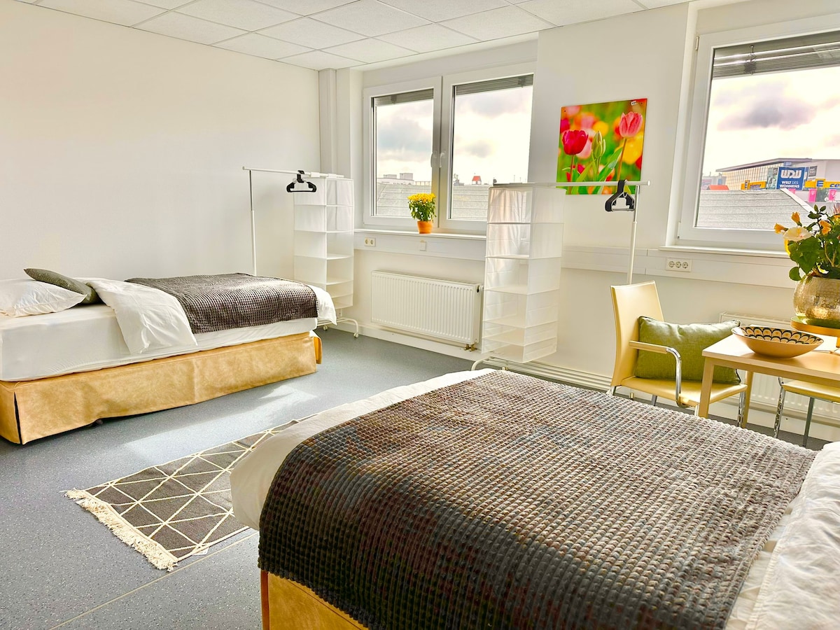 - 19m² kamar - tempat tidur spring box (120 x 210 ) - Internet berkecepatan tinggi - ber - AC - TV 49 inci - pengering rambut - jendela duduk panorama - termasuk sarapan pagi - penggunaan sauna & gym gratis