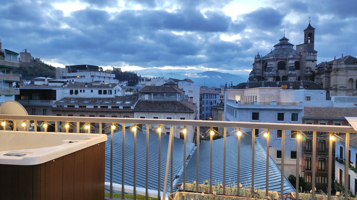 Penthouse 120m2 yang baru direnovasi pada tahun 2024 di depan katedral. Dua kamar tidur (satu quadruple dan satu double), kamar mandi dan toilet, semuanya eksterior dan dengan pemandangan Granada yang luar biasa. Ruang makan dan dapur yang luas. Semua fasilitas dirancang dan dilengkapi sesuai dengan standar kenyamanan, kualitas, dan layanan yang tinggi (pencahayaan bertahap, tirai/tikar mesin, remote control, jendela kaca tiga kali lipat, shower walk - in dengan curah hujan dan air terjun).