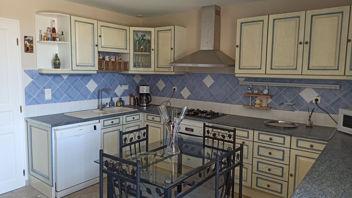 Rumah seluas 140 m2, cukup untuk 11 orang. Direnovasi dengan gaya arsitektur Drôme des Collines dengan kerikil & batu. Semuanya termasuk dalam harga untuk kenyamanan Anda, Anda tidak akan mendapatkan kejutan! Wifi. Dapur lengkap, Ruang tamu dengan perapian + tempat tidur sofa, 1 tempat tidur 180 + tempat tidur 90, 3 kamar tidur 140 tempat tidur, 2 kamar mandi (walk - in shower, bathtub), 2 toilet. Di tengah 13 hektar, dikelilingi hutan dan padang rumput, ideal untuk masa inap yang menenangkan atau untuk masa inap profesional.