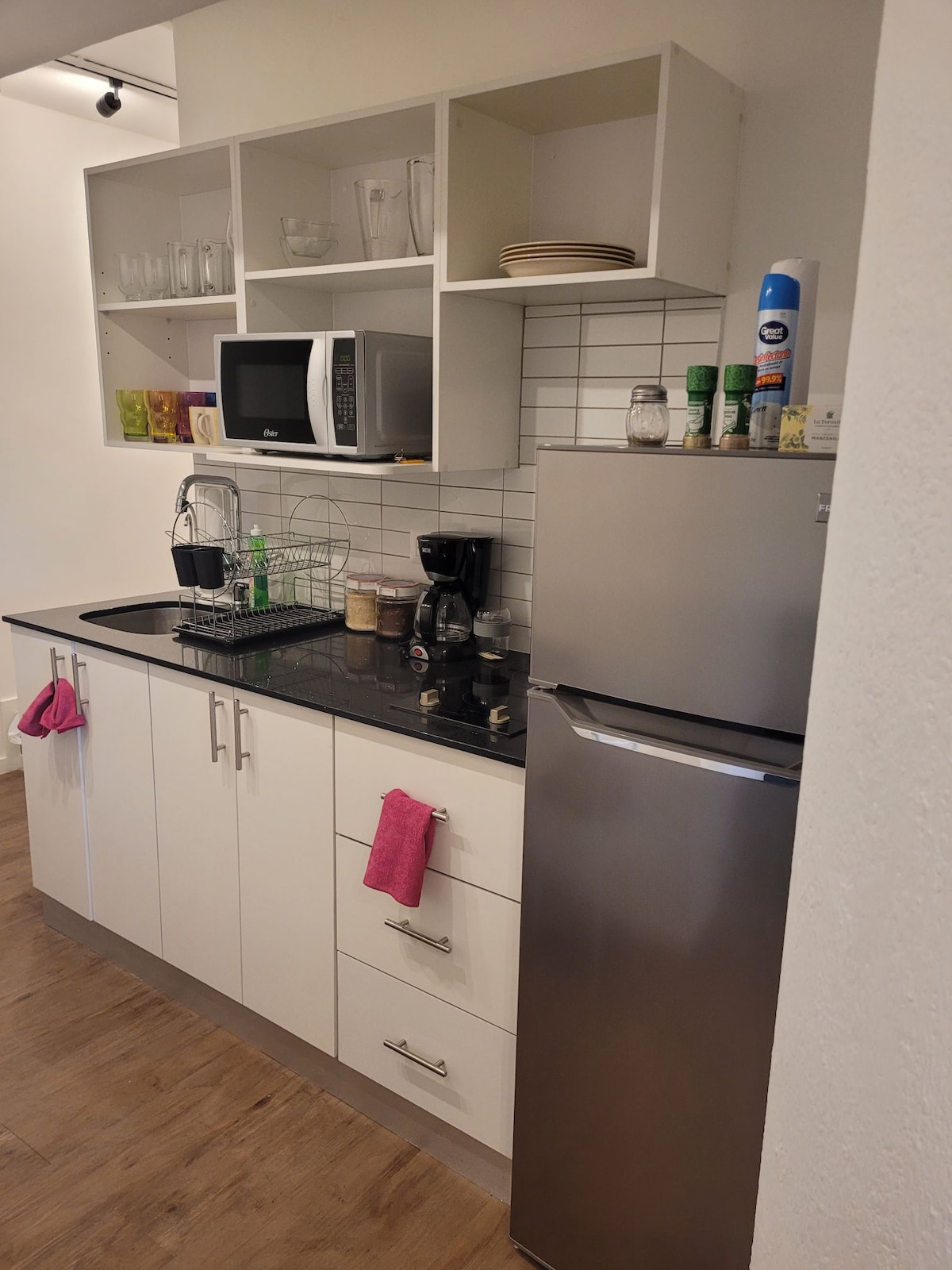 Boutique, modern apartment in Zone 4, rated 4.97/5 with dozens of reviews praising its impeccable cleanliness, strategic location, comfortable and secure design—perfect for both business trips and vacations. The bedroom features a queen-size bed for two. A bright living room with a chaise lounge sofa and cable TV, a fully equipped kitchen, and a spotless bathroom. With fast Wi-Fi and A/C, your stay will be ideal whether you’re traveling for work or leisure.