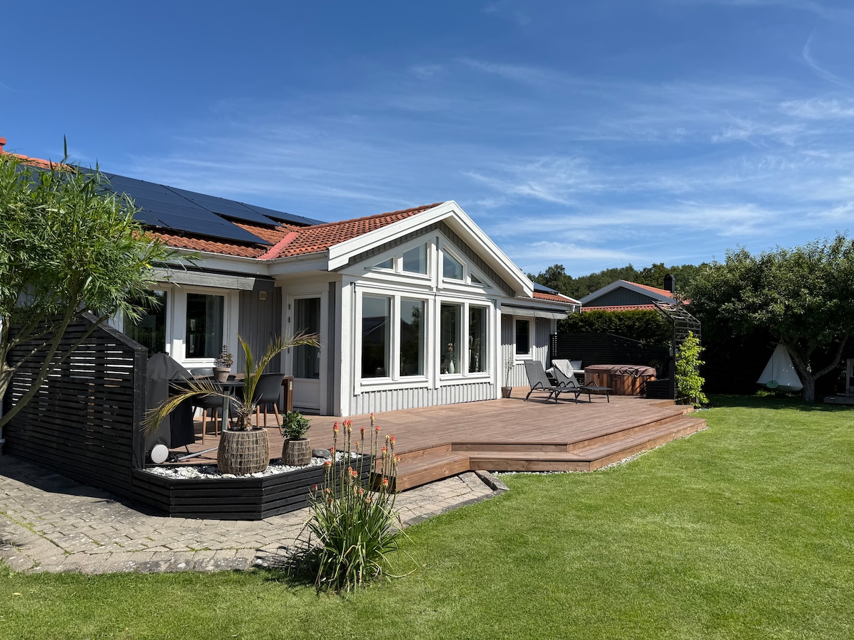 Selamat datang di rumah damai kami yang baru dibangun dengan pemandangan yang menggemaskan, rumah ini terpencil. Alam menciptakan kedamaian dan harmoni. Teras besar dengan matahari malam dan juga teras untuk sarapan di bawah sinar matahari pagi. Cocok untuk hari/malam yang indah di luar ruangan. Area mandi ke berbagai danau berada di dekatnya. Kamar mandi di laut sekitar 30 menit. Gothenburg 30 menit dengan mobil atau kereta komuter 20 menit dari stasiun Nol 5 menit dengan mobil. Spons blueberry/lingonberry serta peluang hiking/cagar alam berada tepat di dekatnya. Di dekatnya terdapat disc golf.