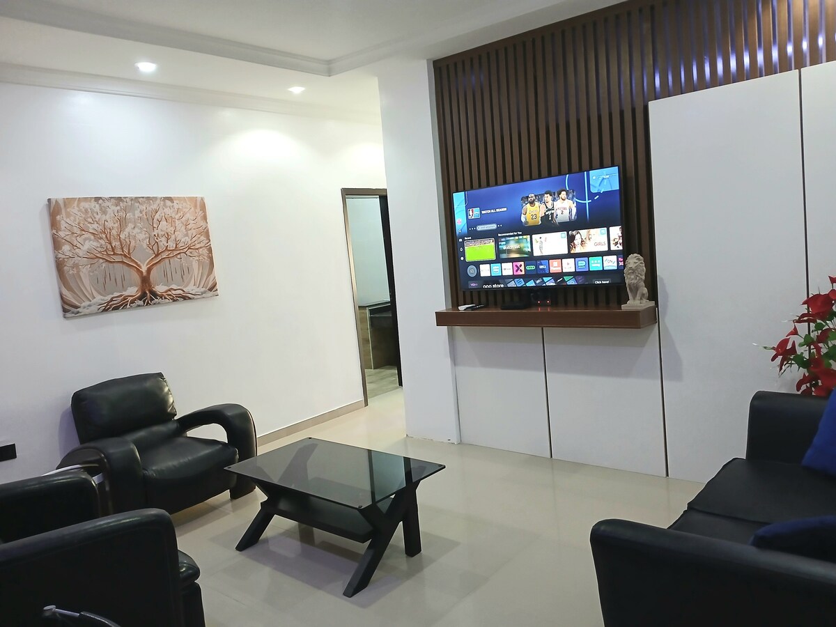 Selamat datang di liburan ideal Anda! Apartemen 3 kamar tidur yang luas ini menawarkan kenyamanan, privasi & listrik 24/7 (inverter + generator), Wi-Fi gratis, ruang kerja khusus, dapur lengkap, dan parkir gratis. Terletak di perumahan Federal Housing Authority yang aman, Mosalasi Ipaja Road, hanya 30 menit dari bandara internasional dan dekat dengan jalan utama. Sangat cocok untuk keluarga, pelawat bisnis, atau masa inap jangka panjang. Pesan penginapan Anda sekarang dan nikmati perpaduan kenyamanan dan kemudahan yang mulus.
