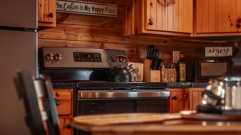 Dibangun pada tahun 2013, 4 tempat tidur di sofa tidur queen 3 BR + ini, 2 kamar mandi, pondok "bebas asap rokok" Single Story. Pemanas sentral dan AC, perapian gas, fasilitas laundry lengkap, Wi - Fi Fiber Optic berkecepatan tinggi, 2 TV, dapur lengkap termasuk Keurig Coffee Maker, Air Fryer, panci/wajan/piring. A wrap around porch to rock away the time and fire - pit for s'mores, and a rear covered porch with gas grill. Buka tempat parkir untuk 3 -4 kendaraan dan terletak di jalan aspal yang dikelola publik.