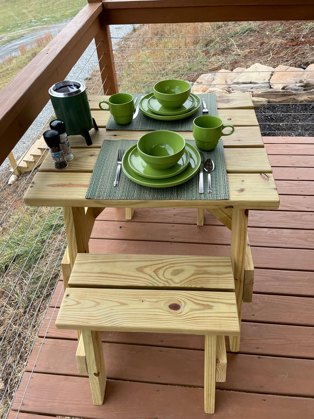 Our home is a 2 bedroom, 2 bath post & beam style cabin. It sits on 4 acres with mountain access/views, and river views with easy access. We are directly on the New River with 330 feet of river frontage at the end of a private road with plenty of distance to the closest neighbor. The living room has a beautiful stacked stone fireplace with a pullout couch and 2 sets of French Doors opening onto the front porch and the spacious side covered porch.