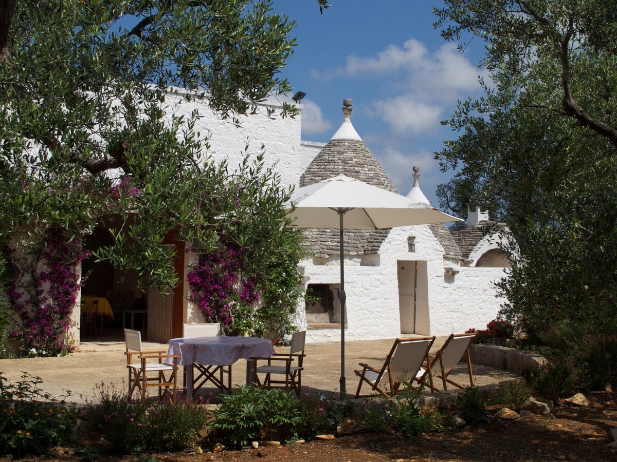 Trullo kami berada di pusat Barsento, daerah perbukitan Apulian dengan dinding batu kering dan pemandangan yang menakjubkan, beberapa kilometer dari Alberobello. Ideal untuk pecinta alam dan wisata, masa inap yang santai atau untuk akhir pekan romantis yang sederhana. Rumah ini nyaman menampung hingga 5 orang berkat ruang dalam dan luar ruangan yang luas. Taman ini disiapkan untuk menghabiskan hari - hari yang menyenangkan di luar ruangan atau saat - saat romansa dan relaksasi dengan jacuzzi luar ruangan.