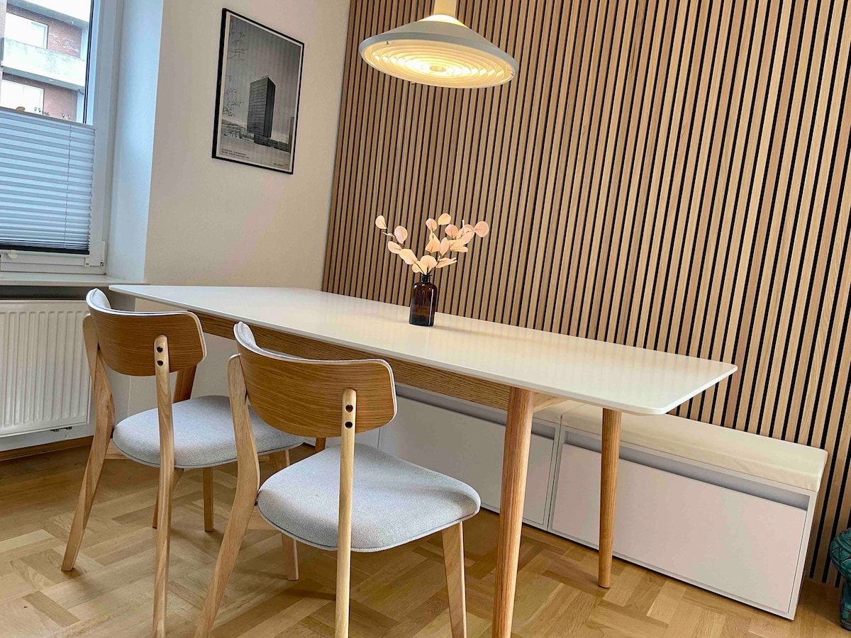Selamat datang di rumah Anda yang jauh dari rumah! Selain desain Skandinavia yang jernih dan nyaman, apartemen dengan teras atapnya yang besar (sekitar 20m2) menawan. Apartemen ini memiliki ruang tamu /ruang makan, satu kamar tidur yang nyaman dan satu kamar mandi. Ada tempat tidur yang nyaman dengan 1,80 x 2m dan sofa tarik dengan dua tempat tidur lagi. Pusat kota dan stasiun kereta api masing - masing berjarak kurang dari 2 km.
