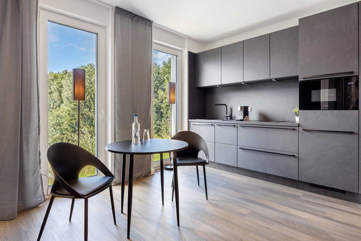 Di FeelHome di Paderborn, tempat peristirahatan yang dirancang dengan bergaya menanti Anda untuk tiba dan beristirahat. Bahan berkualitas tinggi, garis yang jelas, dan suasana yang tenang segera memastikan kesejahteraan. Kamar tidur dengan tempat tidur ganda yang nyaman, ruang tamu dan ruang makan modern, dapur kecil, dan kamar mandi elegan dengan pancuran. Lokasi sentral, cukup berjalan kaki ke pusat kota. Check-in fleksibel melalui Nuki.